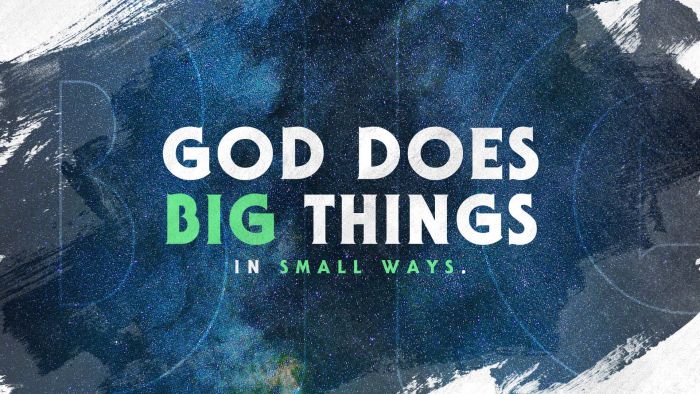 Has God lived up to your expectations? Not all of us can say He has. Maybe you thought He’d do more to help your marriage, your career, or your health by now. Maybe you believe your struggles, or even you yourself, are just too small to bother our big God. When things go dark, when hopelessness sets in and your faith is shaken, know you’re in good company. The bible shows us time and time again how God uses the small, the unlikely, and even the broken to do big things in this world. We may not always see how He is working, but not because He isn’t working. Sometimes God does big things in small ways.