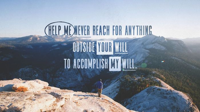 Help me never reach for anything outside of your will to accomplish my will.